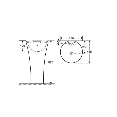 Lavabo Vendome G306, lavabo da terra, diam. 455x455x870 mm.
