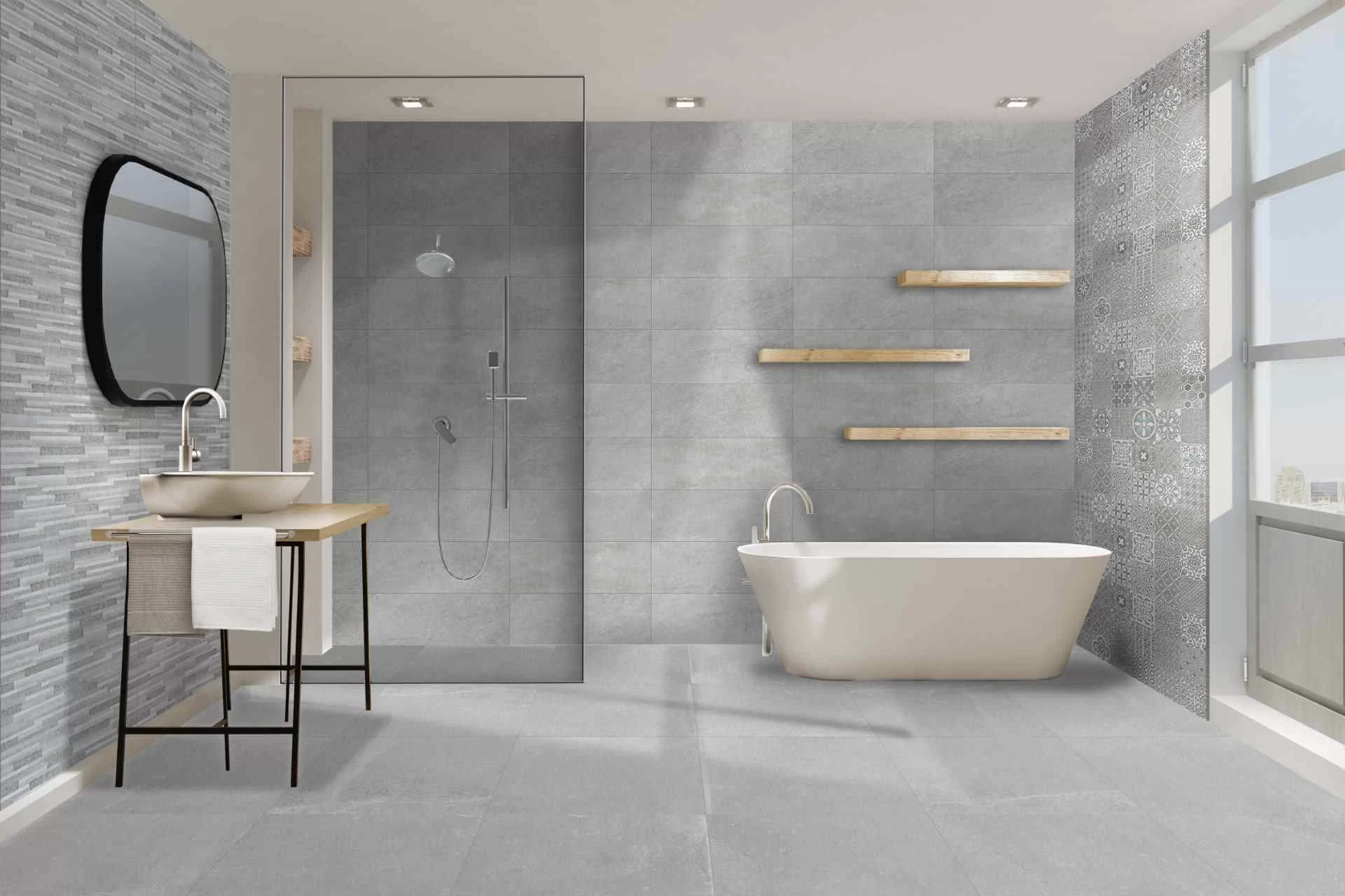 Mask Muretto Grey 25×75. Rivestimento in pasta bianca.